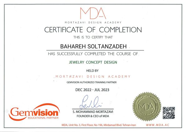 Consistency and professionalism at Mortazavi Design Academy comes from many years of study, experience and research in jewelry innovation and design. MDA teachers are professional jewelry designers certified as academic instructors, and have trained to become well-experienced in teaching the latest methods in jewelry modeling and design. The academic material developed by MDA are unique and unparalleled to any other design academy or university in the world. After a decade of teaching jewelry design, I decided to share my experiences in a more practical way with those who are passionate to learn this profession. MDA team find themselve obligated in developing students to become designers that are proficient, precise and look towards creating concepts that last longer than style or trend. Instructors who are chosen to teach at Mortazavi Design Academy are often selected from the top ten designers in the academy. MDA team continue to assist students with any technical jewelry designing issues, software installation and hardware requirements even after they graduate from the academy. They can always use services such as makeup classes, help with their computer software issues or if qualified, they can be recommended to companies for a job interview. MDA team make sure that the latest teaching methods and materials are presented, and moreover they are instructed in a way to meet the local market and domestic production needs; so students that graduate from the academy not only learn how to design properly, but become qualified for the competitive jewelry market. Based on experience, the main goal of those who chose to attend MDA is often to find a job and have an income. Eventually those who graduate from MDA will be awarded an international certificate from the academy.